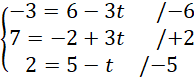 Ustal, które z punktów P(3,1,2), Q(9,0,6), R(-3,7,2) należą do prostej