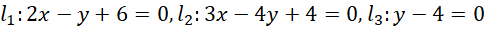 Znajdź współrzędne wierzchołków trójkąta, którego boki są zawarte w prostych:
