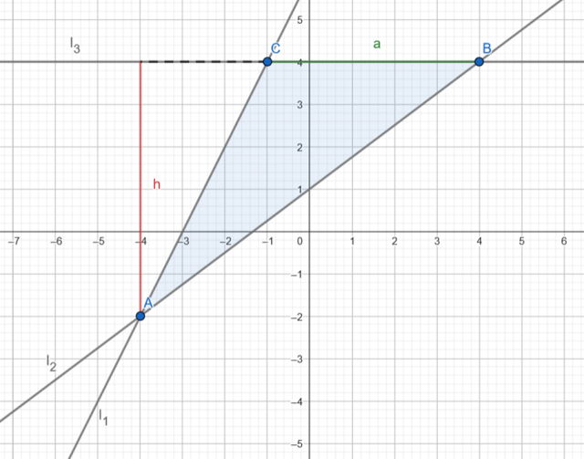 Wykonaj rysunek pomocniczy i zaznacz na nim wierzchołki powstałego trójkąta oraz znajdź ich współrzędne.