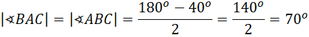 Wykonaj rysunek pomocniczy. Następnie skorzystaj z tego, że dwusieczna dowolnego kąta dzieli go na dwa kąty o takiej samej mierze, miary kątów przy podstawie trójkąta równoramiennego jest taka sama, a suma miar kątów w trójkącie wynosi