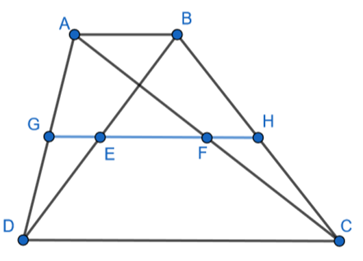 Udowodnij, że w trapezie niebędącym równoległobokiem odcinek łączący środki przekątnych trapezu jest równoległy do jego podstaw.