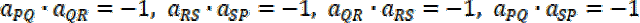 Dodatkowo proste PQ i QR, RS i SP, QR i RS oraz PQ i SP powinny być prostopadłe, więc ich współczynniki kierunkowe muszą być przeciwne i odwrotne, czyli spełniać warunek: