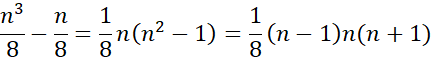 Zauważ, że zapis oznacza iloczyn trzech kolejnych liczb całkowitych, a wśród trzech kolejnych liczb całkowita dla nieparzystego jest zawsze jedna parzysta, jedna podzielna przez 3 i jedna podzielna przez 4, więc ich iloczyn na pewno dzieli się przez 8 , więc liczba będzie zawsze naturalna (i 8 się ze sobą zawsze skrócą).