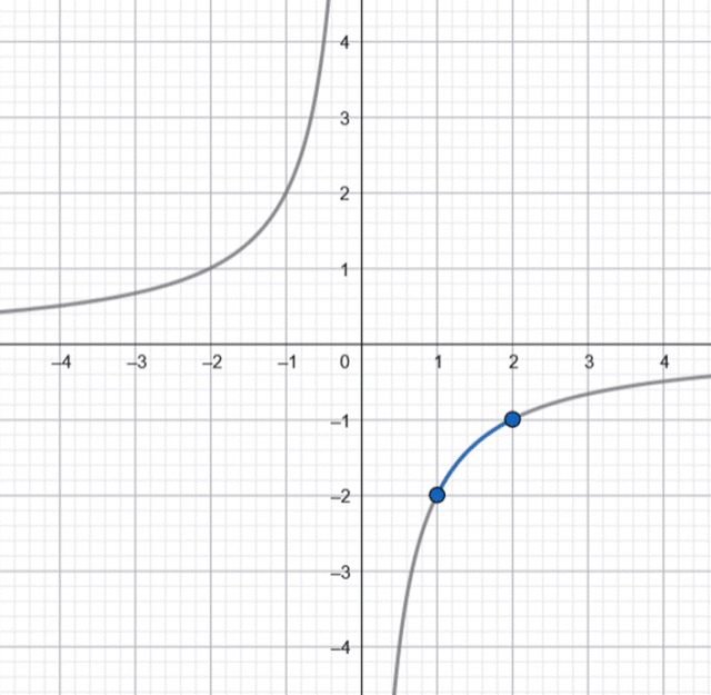 Zauważ, że w mianowniku ułamka nie może być 0 i na tej podstawie oblicz dziedzinę podanej funkcji, a następnie naszkicuj jej wykres oraz odczytaj wartość najmniejszą i największą w podanym przedziale.