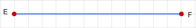 Długość odcinka EF jest trzy razy dłuższy od odcinka AB, który ma 4 kratki długości, więc długość odcinka AB należy pomnożyć przez 3, by dostać długość odcinka EF wyrażoną w kratkach.