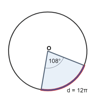 Pw–pole wycinka, r–promień koła, d = 8π cm, d–długość łuku okręgu wyznaczony przez ten wycinek. α = 108°