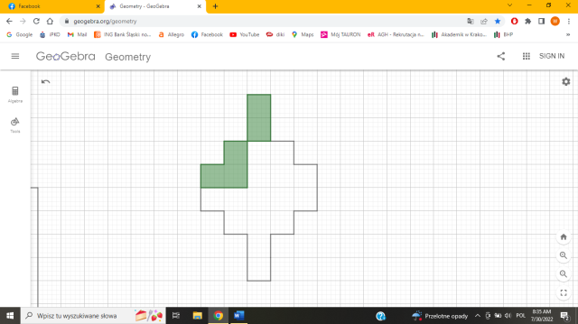 Oblicz liczbę małych kwadratów wielokącie, a następnie policz 25%, czyli jedną czwartą tej ilości. Zamaluj 5 dowolnych małych kwadratów.