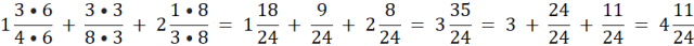 Abyś mógł obliczyć odległość między pieskami, musisz dodać odległość dużego psa do piłki, odległość piłki do kości i odległość kości od małego psa. Pamiętaj, że żebyś mógł je dodać muszą mieć ten sam mianownik. Wspólnym mianownikiem