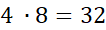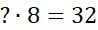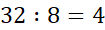 Aby wykonać 32 : 8, szukamy liczby, która pomnożona przez 8 daje wynik 32.