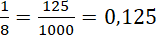 Na początek policz, ile odcinków dzieli liczbę 0 od liczby 1 na osi liczbowej – jest ich 8, czyli każdy z nich to jedna ósma całości. Zamiast dodawać do siebie odcinki od liczby 0, możesz od liczby 1 odjąć tyle razy jedną ósmą, ile odcinków dzieli liczbę 1 i dany punkt. Następnie przedstaw ułamki w postaci dziesiętnej: skróć możliwie ułamki, a następnie rozszerz je do mianownika równego 10, 100 lub 1000, mnożąc licznik i mianownik przez taką samą liczbę naturalną, a następnie wpisz po przecinku (przed przecinkiem znajduje się liczba całości, która będzie wynosić 0) liczbę z licznika.