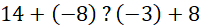Oblicz działania po obu stronach znaku zapytania. Dodawanie liczb ujemnych jest odejmowaniem. Aby odjąć większą liczbę od mniejszej, zamień kolejność w odejmowaniu i zmień znak przed całym działaniem.