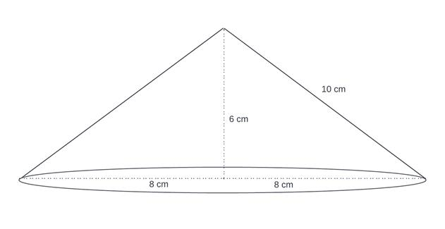 Naszkicuj bryłę powstałą przez obrót trójkąta prostokątnego wzdłuż krótszej przyprostokątnej. Długości boków tego trójkąta to 6 cm, 8 cm i 10 cm.