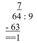W tym zadaniu musisz wykonać dzielenie 64 ∶ 9 z resztą i sprawdzenie.