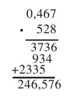 Pomnóż liczbę dziesiętną i naturalną sposobem pisemnym, czyli zapisz liczby tak jak w przypadku mnożenia pisemnego. Przecinek w wyniku zapisz, w tym samym miejscu, w jakim znajduje się w liczbie dziesiętnej.