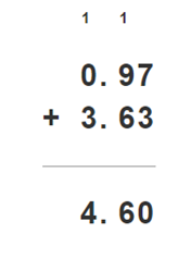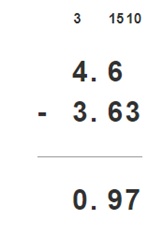 4,6 – 3,63 = 0,97