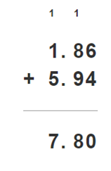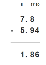 7,8 – 5,94 = 1,86