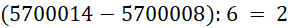 Od 5700008 do 5700014 jest sześć kresek, zatem jedna ma wartość