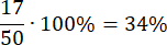 Podziel 17 przez 50, a otrzymany ułamek zamień na procenty: