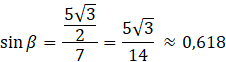 W rozwiązaniu zadania skorzystaj z długości boków trójkąta ABC wyznaczonych w podpunkcie a) tego zadania. Oblicz wartości sinusa kąta