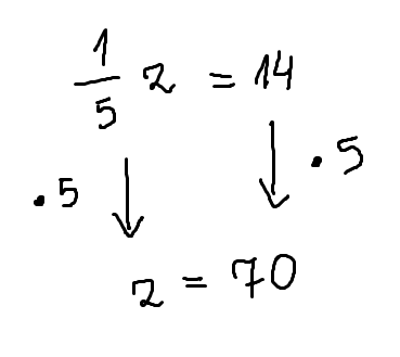 Zapisz przy strzałce · 5. Obie strony równania pomnóż przez 5.