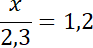 Skorzystaj ze wskazówki. Liczba 2,3 razy mniejsza od x daje 1,2, więc liczba 2,3 razy większa od liczby 1,2 jest równa szukanej wartości x. Pamiętaj, kreska ułamkowa oznacza także dzielenie.