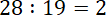 Następnie podziel 28 przez 19. Wynik równy 2 oznacza, że istnieją 2 liczby naturalne podzielne przez 19, mniejsze lub równe 28.