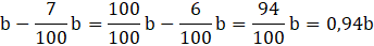 całości. Jeżeli napisane jest, że liczba ma być mniejsza o np. 15% to odejmujemy od niej 15% tej samej liczby i otrzymujemy liczbę o 15% mniejszą.