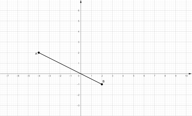 Narysuj wykres funkcji f, która jest odcinkiem o końcach A(-4, 2) i B(2, -1). Odczytaj miejsca zerowe, zbiór argumentów oraz, dla których wartości funkcja przyjmuje wartości nieujemne.
