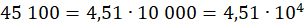 W tym zadaniu przedstaw liczbę 45 100 za pomocą notacji wykładniczej.