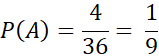 Zauważ, że są to sytuacje: (2, 6), (3, 4), (4, 3), (6, 2). Z definicji prawdopodobieństwa w liczniku jest liczba zdarzeń sprzyjających, a w mianowniku liczba wszystkich możliwych zdarzeń.