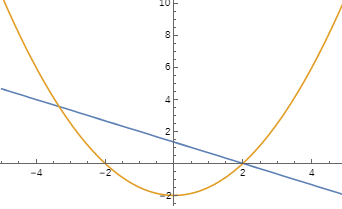 Wyszczególnij na wykresie przedział ukryty w rozwiązaniu układu równań.