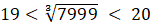 Liczba 19 podniesiona do sześcianu jest mniejsza od 7999, a liczba 20 podniesiona do sześcianu jest większa od 7999. Czyli liczba
