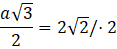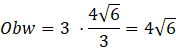 , gdzie a jest długością boku trójkąta. Po przekształceniu tego równania wyznaczono długość boku trójkąta. Aby obliczyć obwód, pomnożono długość boku trójkąta przez 3.