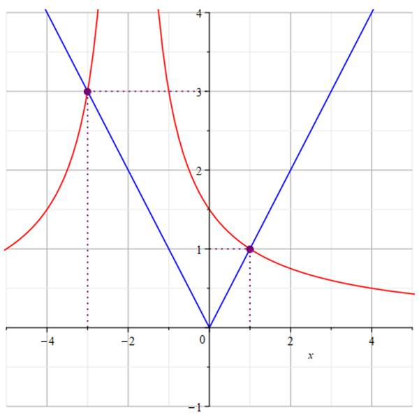 . Z treści zadania wynika rozwiązanie, które należy przeprowadzić metodą graficzną. Punkty przecięcia się funkcji (ich odcięte [x]) są rozwiązaniem tego równania. Funkcje