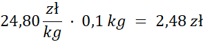 Oblicz, jakim ułamkiem kilograma jest szukana ilość sera. Pomnóż ułamek przez kwotę za kilogram.