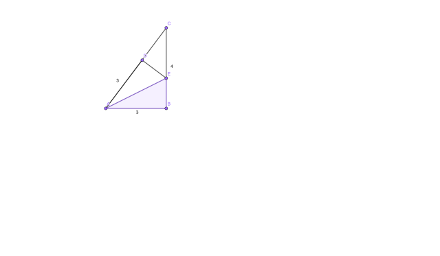 Wykorzystaj twierdzenie Pitagorasa do obliczenia długości boku AC. Zauważ, że trójkąty CDE oraz ABC mają dwa takie same kąty, a więc są podobne z cechy KK. Oblicz skalę podobieństwa tych trójkątów i wykorzystaj to do obliczenia boku CE. Potem oblicz BE. Oblicz pole trójkąta ABE.