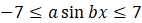 Liczba a we wzorze y = a sin bx odpowiada za zbiór wartości funkcji, który jest podany w treści zadania. Wiedząc, że w przypadku funkcji y = sin bx jest nim przedział ⟨-1; 1⟩, wyznacz wartość a, przyrównując ze sobą odpowiednie nierówności. Zauważ, że zarówno wartość ujemna, jak i dodatnia tej liczby będzie spełniała warunki zadania.