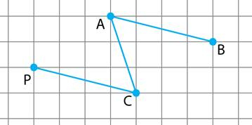 W tym zadaniu musisz zaznaczyć punkty A, B i C na kartce w kratkę, tak aby odcinki AB i AC były ukośne, a punkt C nie leżał na odcinku AB. Następnie musisz narysować odcinek CP, który ma taką samą długość jak odcinek AB i jest równoległy do niego.