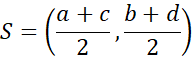 W tym zadaniu musisz obliczyć współrzędne środka odcinka. Końce odcinka to: K = (a, b) L = (c, d).