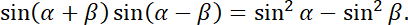 Aby udowodnić tożsamość przekształć jej lewą stronę. Zacznij od wykorzystania wzorów na sinus sumy i różnicy kątów. Następnie skorzystaj ze wzoru skróconego mnożenia na różnicę kwadratów, a kolejno z wzoru