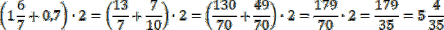 Pamiętaj o kolejności wykonywania działań: najpierw nawiasy, potem mnożenie/dzielenie, a na końcu dodawanie/odejmowanie. Ułamki dziesiętne zamień na zwykłe, doprowadź je do wspólnego mianownika i oblicz ich sumę. Uzyskany wynik przedstaw w postaci liczby mieszanej.
