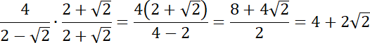 Aby pozbyć się niewymierności z mianownika musisz pomnożyć licznik i mianownik ułamka przez wartość znajdującą się w mianowniku, z przeciwnym znakiem pomiędzy wyrażeniami.