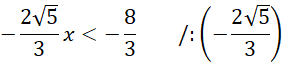 Pamiętaj, że gdy nierówność dzielisz przez liczbę ujemną, to jej znak zmieni się na przeciwny oraz o pozbyciu się niewymierności z mianownika, czyli pomnóż licznik i mianownik ułamka przez pierwiastek znajdujący się w