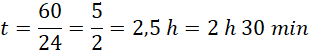 Ustal, ile czasu zajmie rowerzyście pokonanie całego dystansu mającego długość 60 km, jeśli będzie jechał z prędkością 24 km/h.