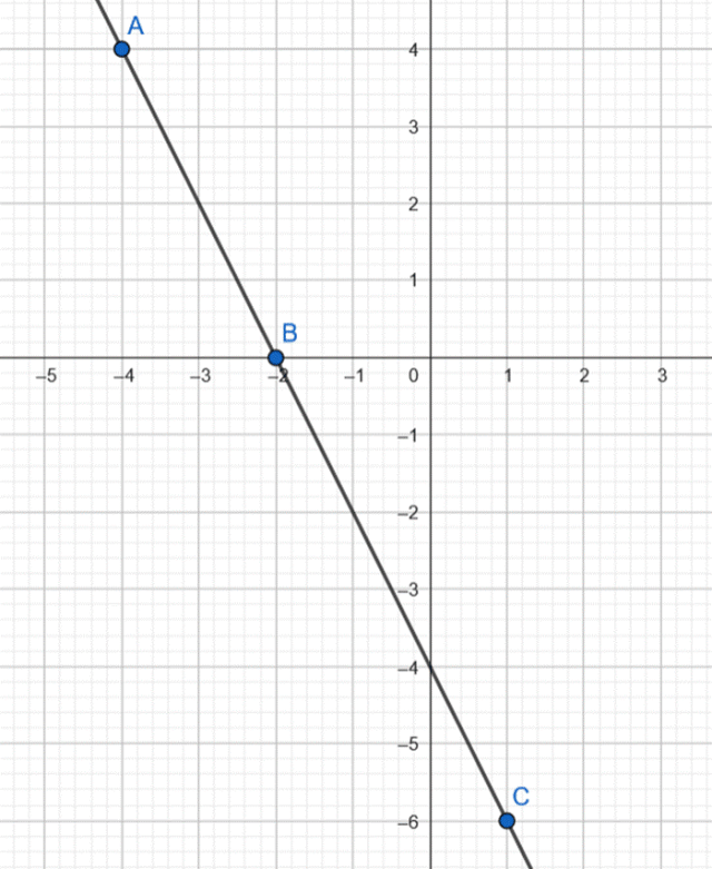 Ustal, czy punkty A(-4,4), B(-2,0), C(1,-6) należą do wykresu tej samej funkcji liniowej.