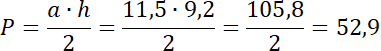 Z powstałego trójkąta odczytaj długość wysokości oraz podstawy na którą opada i oblicz jego pole.