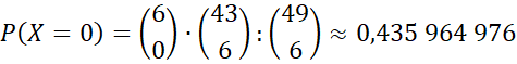 Ustal, jaka powinna być cena jednego zakładu, aby gra była sprawiedliwa, jeśli w tabeli podano prawdopodobieństwo trafienia trójki, czwórki, piątki i szóstki w grze liczbowej, w której skreślamy 6 spośród 49 liczb oraz przyjmijmy, że jeśli trafimy trójkę, wygrywamy 100 zł, czwórkę – 1000 zł, piątkę – 10 000 zł, szóstka a szóstkę 10 000 000 zł.