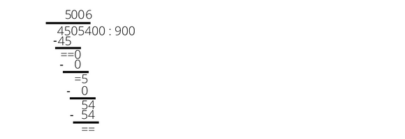 Podczas dzielenia możesz pominąć po tyle samo zer z obu liczb, w tym przypadku będziesz więc dzielił 45054 : 9.