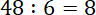 Zauważ, mianowniki ułamków są takie same, więc należy znaleźć dzielnik, który jest liczbą naturalną. Przyjrzyj się licznikom: aby otrzymać liczbę 8, liczbę 48 należy podzielić przez 6.