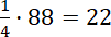 25% liczby 88 to ćwiartka (czwarta część) liczby 88, czyli